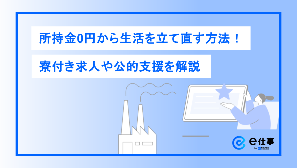 所持金0円から生活を立て直す方法!寮付き求人や公的支援を解説